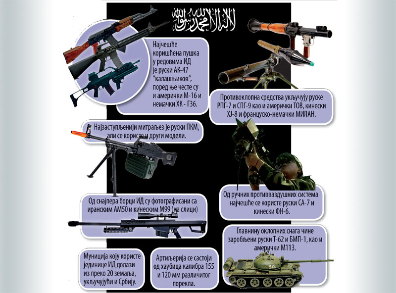 Velika potražnja za mecima povezana je s borbenom taktikom terorista. Organizacija se za osvajanja, kao i povlačenja, oslanja na minirane automobile i napade samoubica. U borbama, u međuvremenu, koristi automatske puške i mitraljeze, najviše „kalašnjikove“ i mašinke montirane na kamione.