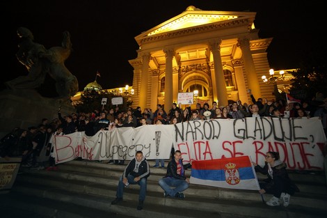 Demonstranti su se vratili pred zgradu Narodne skupštine gde su se okupili na stepenicama skandirajući parole, ali i „Sutra u šest“, najavljujući nastavak skupa. (Blic)